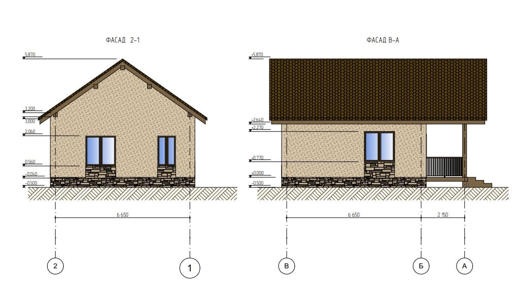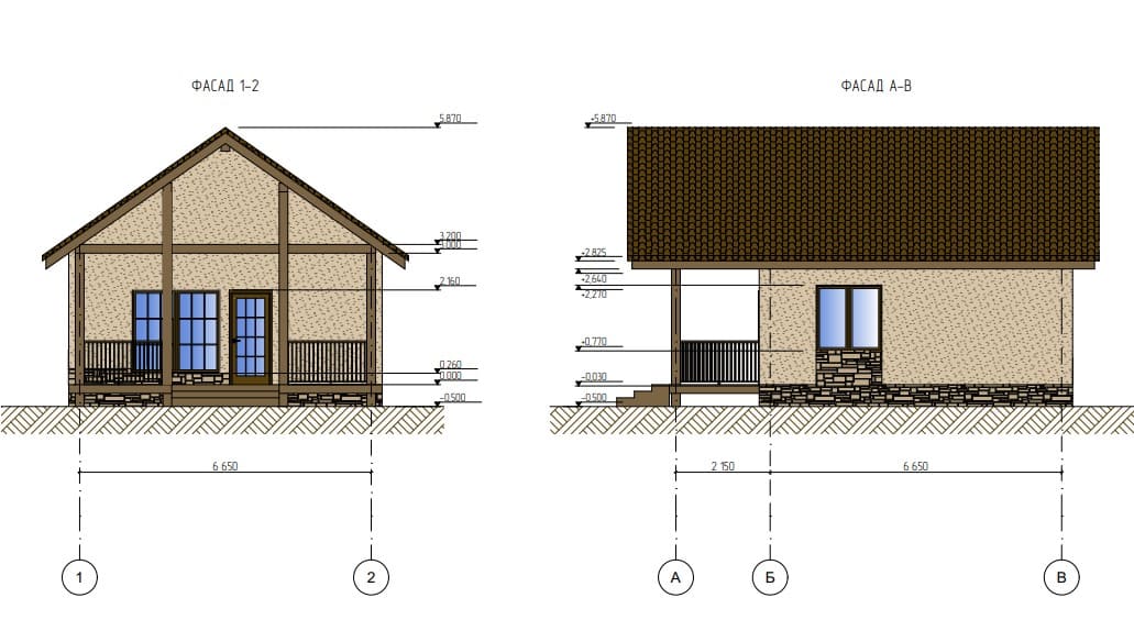 Площадь постройки 38,8 м2, а его габариты 8,8х6,65.